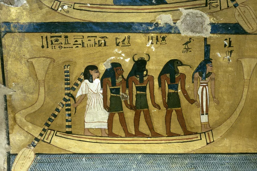 Les pleureuses font partie de l'entourage du défunt ou bien sont des professionnelles payées par la famille. Elles se doivent de crier, gémir ou scander des lamentations lors du transport de la dépouille, afin de rendre plus spectaculaire l’hommage au défunt. D’après les reliefs et peintures, l’attitude est toujours la même : elles lèvent les bras au ciel, et imitent en cela les déesses Isis et Nephtys, ainsi représentées près de la dépouille de leur frère et époux, le dieu du monde des morts Osiris. Sur cette peinture, on voit les larmes couler sur les joues des femmes aux cheveux défaits.